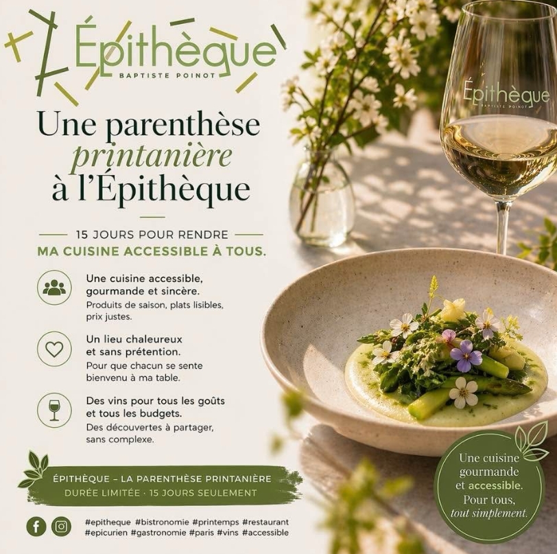 Baptiste POINOT poursuit son développement et suit son instinct en transformant FLAVEURS en ÉPITHÈQUE. Toujours de la Gastronomie valorisée par la confirmation au Guide Michelin de la fameuse Etoile*, pour poursuivre son projet !